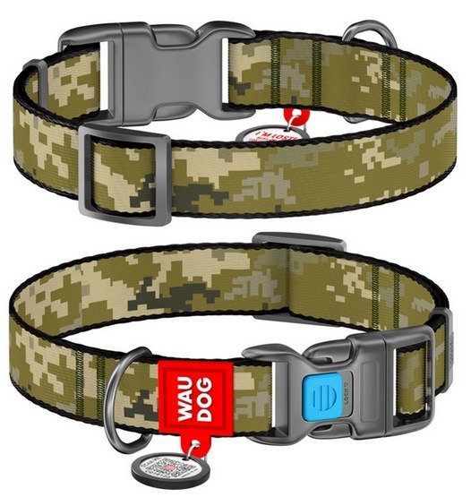 Collar WauDog Nylon Obroża nylonowa z QR-paszportem, plastikowy fastex, wzór MILITARY, M 20mm/28-40cm